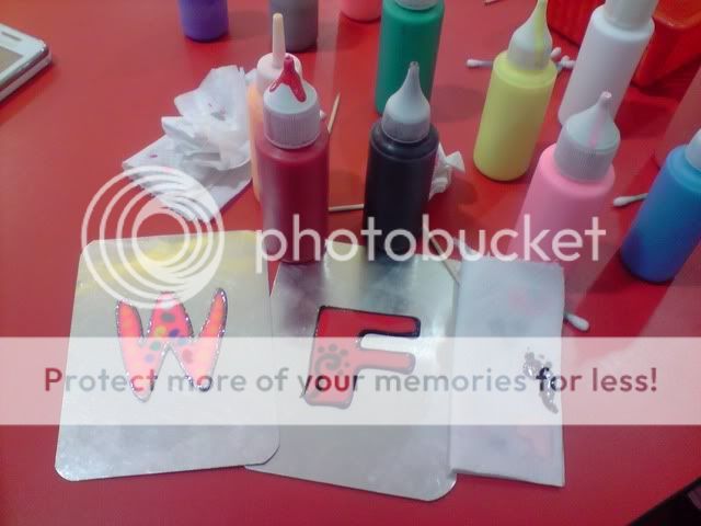 And guess what we did just now? We did paint art! Heee! Is it called paint art? Idk. Nevermind, but anyway I never did that before until today. Awww, I feel like a kid again, sitting among them and coloring the alphabet. The process of making it is like so coool. Heh.