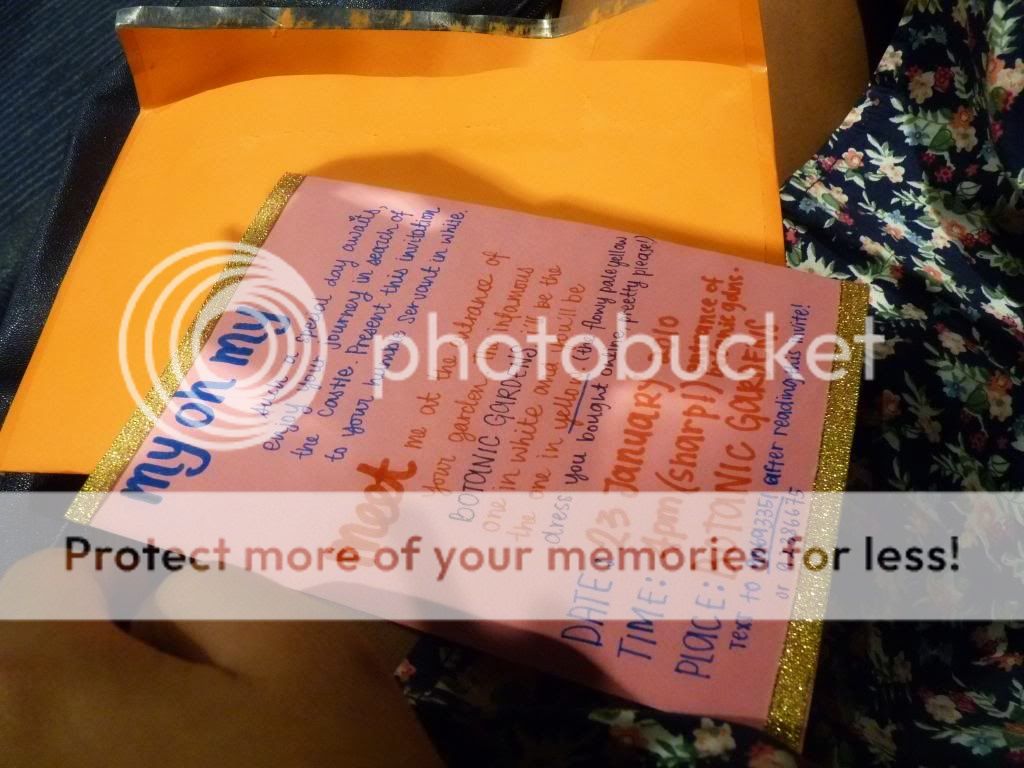 On the night of my birthday, I received an envelop from my white humble servants (i have no idea who). I thought it was a top or dress inside it cause it feels like a cloth. But it was a poncho with words saying "When the skies are crying, open this up. It'll protect you dear princess." I am so glad I don't have to wear it cause of the weather!