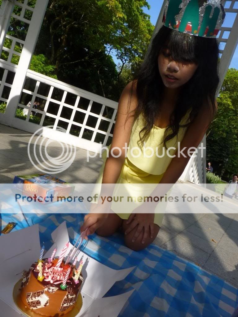 Picnic in the white hut. Its like almost 5 and I haven't eaten anything yet! Imagine how hungry was I! I know the rest ate their food while the decorating the castle. Its in one of the picture I saw. While eating the cake, I really thought they bought champagne (cause it really look like one) and gonna make sure all the liquid will be splashed on me. I was getting ready to be splashed on and covered my face tightly. I was scared at that time. Heard the popping sound but my body was still dry. Look up and saw two umbrellas directly facing me. -.-